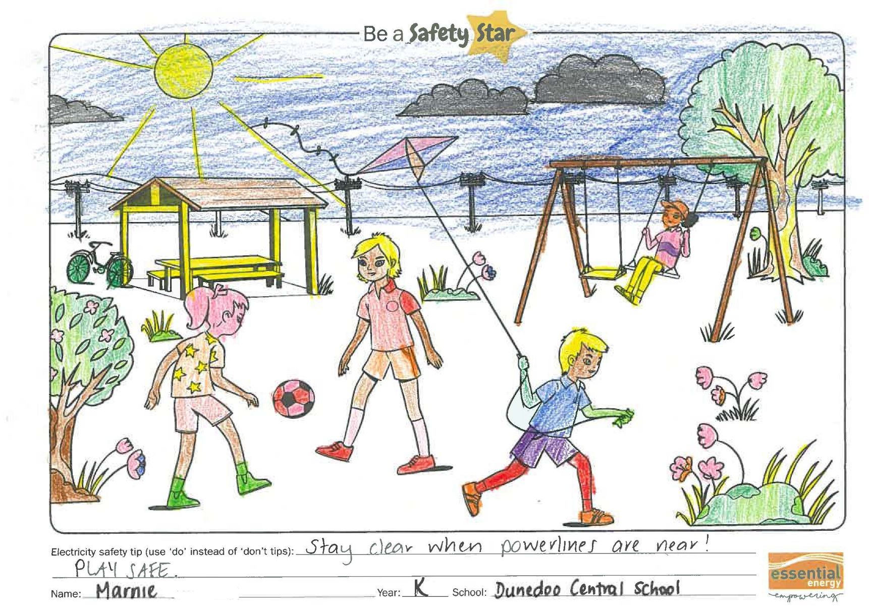 As part of entering the competition, students were asked to showcase their artistic talents by colouring-in a picture that highlights a range of electricity safety measures from our key safety messages.